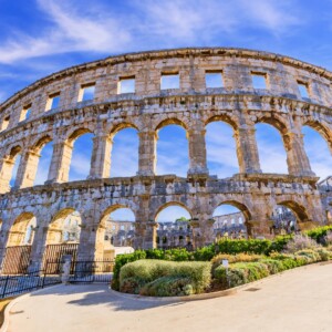 Beginn Ihrer Tagesreise in die faszinierende Stadt Pula bietet eine erfrischende Flucht aus der täglichen Routine und eine perfekte Mischung aus Geschichte und Küstencharme. Eingebettet auf der unberührten Istrischen Halbinsel, ist Pula eine malerische Stadt in Kroatien, die mit einem beeindruckenden Erbe aus der Zeit als bedeutende römische Siedlung aufwarten kann. Mit ihren bemerkenswert gut erhaltenen antiken Stätten lädt dieses faszinierende Ziel die Besucher ein, in der Zeit zurückzureisen und die Größe ihres römischen Erbes zu erleben, während sie die landschaftliche Schönheit der Adriaküste genießen.