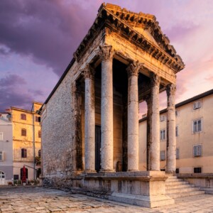 Sobald Sie in Pula sind, beginnt Ihre Entdeckung der reichen Vergangenheit mit einigen der bekanntesten römischen Sehenswürdigkeiten. Die berühmte Pulska Arena gilt als eines der weltweit am besten erhaltenen Amphitheater und wurde historisch für aufregende Gladiatorenkämpfe genutzt. Heute ist die Arena nicht nur ein historisches Monument; sie ist ein aktives Kulturzentrum. In der heutigen Zeit finden hier Konzerte, Filmfestivals und andere Aufführungen statt, einschließlich Opern und Theaterstücken. Das Pula Film Festival, eines der prestigeträchtigsten Filmereignisse Kroatiens, wird hier jährlich abgehalten. Der Augustustempel ist ein atemberaubendes Denkmal antiker architektonischer Exzellenz in Worship-Stätten, die den Göttern gewidmet sind. Verpassen Sie nicht den Slavoluk Sergijevaca, der ein triumphales Tor markiert, das römische Siege feiert, oder die Zwilingstor Pula zu erkunden – Monumente, die Sie direkt mit den mächtigen Stadtmauern verbinden, die diese geschichtsträchtige Stadt in vergangenen Jahrhunderten verteidigten.