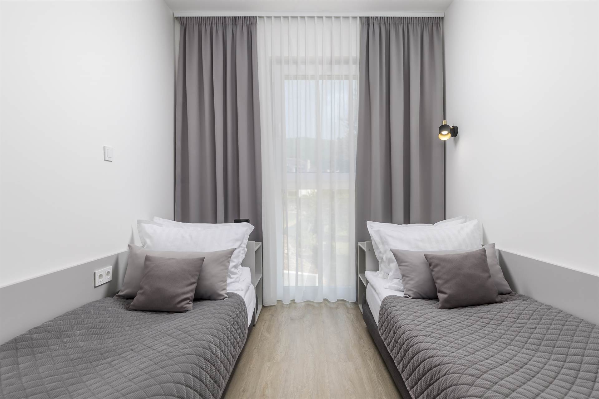 Den Gästen steht ein gemeinschaftlicher Swimmingpool zur Verfügung – ideal zur Entspannung an warmen Sommertagen – sowie ein privater Parkplatz. Das Gebäude ist ein Neubau und bietet ein hohes Maß an Komfort und Funktionalität. Es ist ideal für alle, die eine ruhige, aber gut angebundene Lage am Meer suchen. Besonders attraktiv ist dieser Ort für Familien und Naturliebhaber.