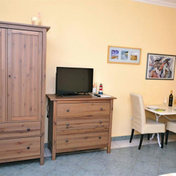 Das Apartment Rustica, das sich im Erdgeschoss befindet, ist für zwei Gäste konzipiert. Es verfügt über ein geräumiges Zimmer mit einem komfortablen Doppelbett, eine gut ausgestattete Küche und ein modernes Badezimmer mit Dusche. Zu den zusätzlichen Annehmlichkeiten gehören Klimaanlage, ein LCD-TV, WLAN mit Glasfaseranschluss und ein Safe.