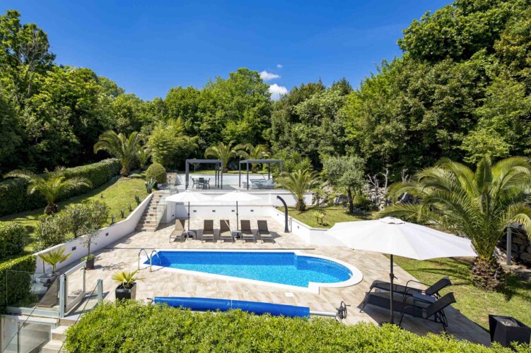 Die luxuriöse Villa-Gartenwohnung mit Pool befindet sich in Opatija, in einer privaten, ruhigen Straße auf einem von Grün umgebenen Grundstück, das Frieden und Privatsphäre gewährleistet und die Villa zu einem idealen Rückzugsort für diejenigen macht, die einen wirklich entspannten Urlaub suchen.