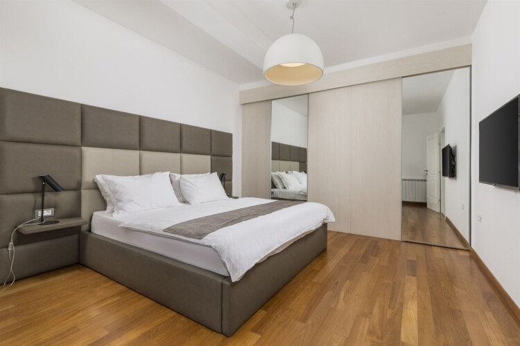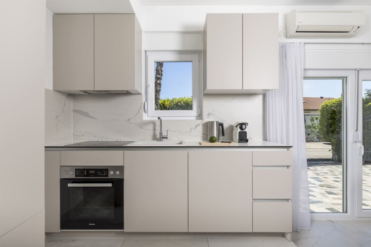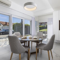 Die Villa bietet drei geräumige Apartments mit je 130 m2, was insgesamt 390 m2 zeitgemäßen Wohnraum ergibt. Die Erdgeschosswohnung verfügt über 2 Schlafzimmer und ist mit Annehmlichkeiten ausgestattet, die moderne Elemente mit Funktionalität und Luxus in Einklang bringen. Die Wohnung bietet Gartenblick, eine Terrasse, einen Sitzbereich, einen Flachbild-TV mit Satellitenkanälen, eine voll ausgestattete Küche und ein eigenes Badezimmer. Das Innere des Hauses schafft eine warme, einladende Atmosphäre, während das Äußere eine Oase der Entspannung in der Natur bietet. Was diese Unterkunft von den anderen unterscheidet, ist ein großer gemeinsamer Garten und ein beheizter Pool, der Sie einlädt, sich zu jeder Jahreszeit zu erfrischen, sowie das Gartenhaus, das Ihnen den perfekten Ort zum Entspannen, Lesen oder Genießen eines Getränks bietet.