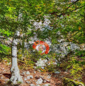If you’re staying in our apartment Vienna in Ičići, near Opatija, near a lot of the hiking trails, head from there along the mountain road towards the Visitor Center Poklon in the Učka Nature Park. The beginning of the trail is about a hundred meters from the center and is clearly marked. After some time, you will see the first signs of art creations. Each artistic intervention on the trail is marked by an image of a handprint on a rock.