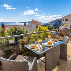 S 80m2, ovaj stan nudi dovoljno prostora za opuštanje i uživanje u zadivljujućem panoramskom pogledu na čitavu Kvarnersku rivijeru s vlastite terase. Bilo da pijete kavu ujutro ili uživate u zalasku sunca navečer, okruženi ste ljepotom Jadranskog mora.
