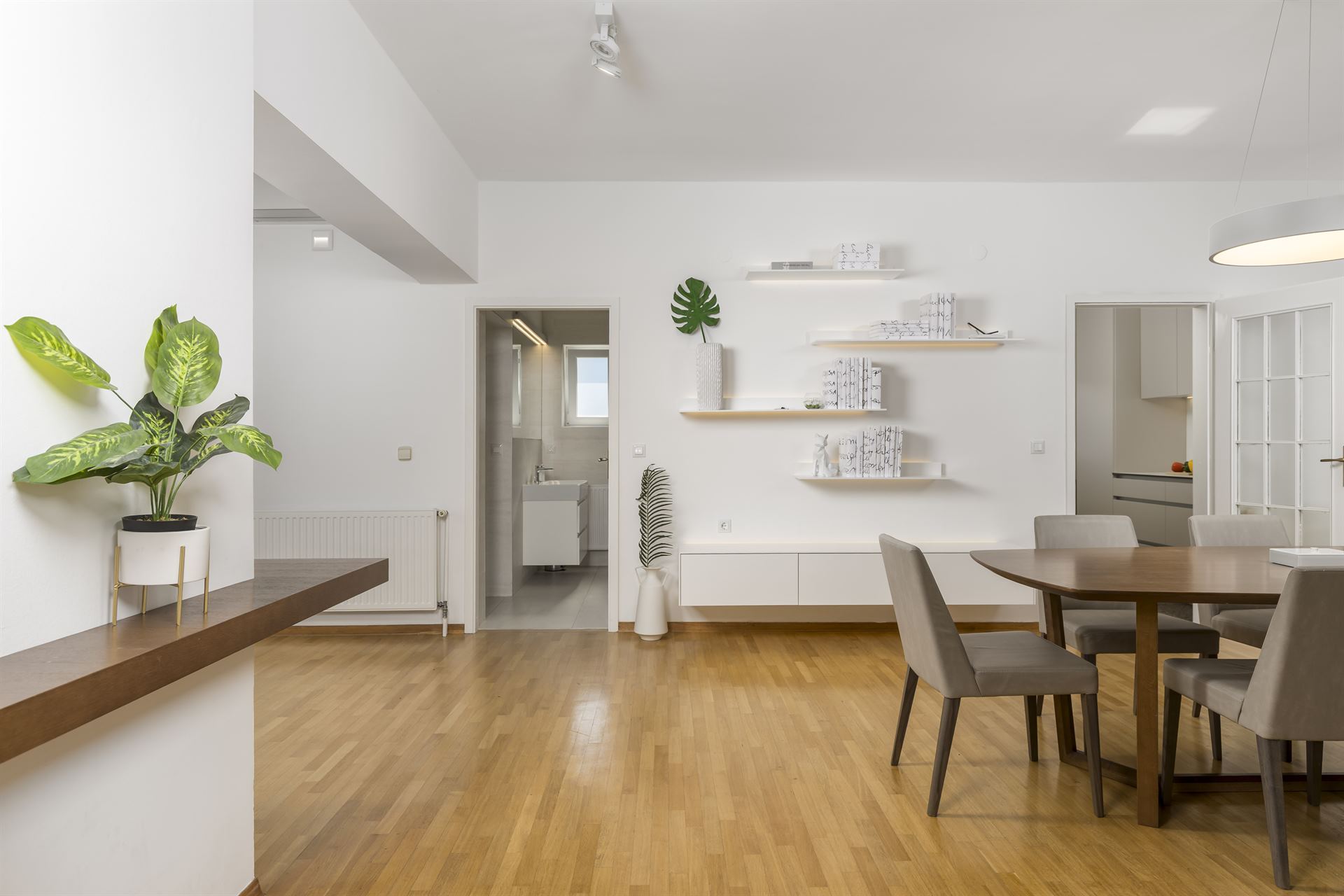 Unutrašnjost apartmana stvara toplu, ugodnu atmosferu, dok vanjski prostor nudi oazu opuštanja u prirodi. Ono što čini ovu nekretninu drugačijom od drugih su veliki zajednički vrt i grijani bazen koji vas pozivaju na osvježenje u bilo koje doba godine, kao i paviljon koji vam pruža savršeno mjesto za opuštanje, čitanje knjige ili uživanje u piću.