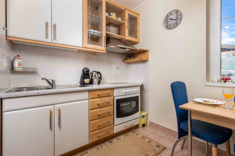 Jedan od glavnih aduta ovog apartmana je fantastična terasa koja nudi panoramski pogled na more. Savršeno je mjesto za uživanje u jutarnjoj kavi ili promatranje zalaska sunca. Terasa je namještena te je tako idealna za druženje uz obrok ili opuštanje i odmor. Ovaj je apartman odličan izbor za one koji žele provesti opuštajući i ugodan odmor blizu mora, uz dodatnu prednost spektakularne terase s prekrasnim pogledom na more.