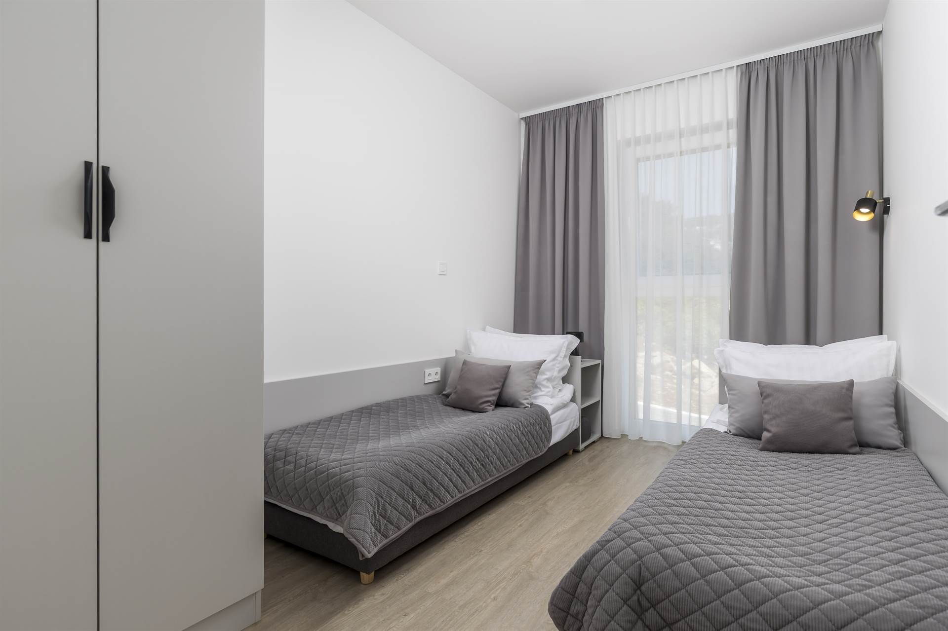 Gostima je na raspolaganju zajednički bazen, savršen za opuštanje tijekom toplih ljetnih dana, kao i privatno parkirno mjesto. Zgrada je novogradnja i nudi visoku razinu komfora i funkcionalnosti, idealna za one koji traže mirnu, ali dobro povezanu lokaciju uz more. Ova lokacija posebno je privlačna obiteljima i ljubiteljima prirode.